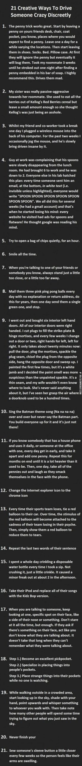 21 Ways to Drive Someone Crazy