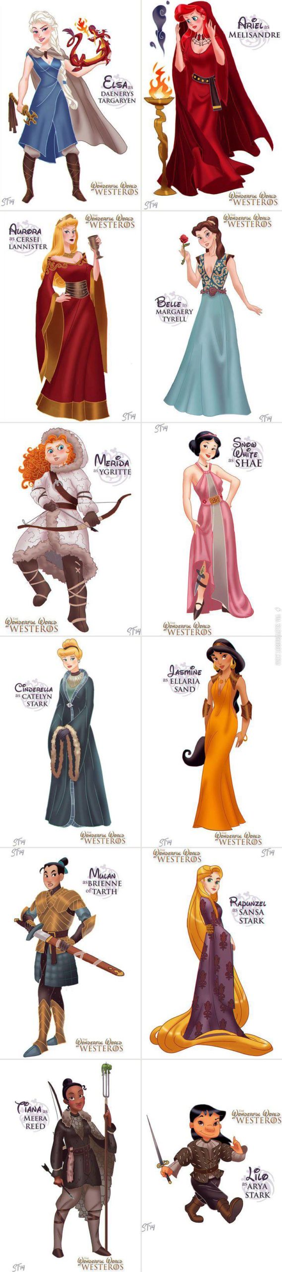 Disney princesses as the women of Game of Thrones.