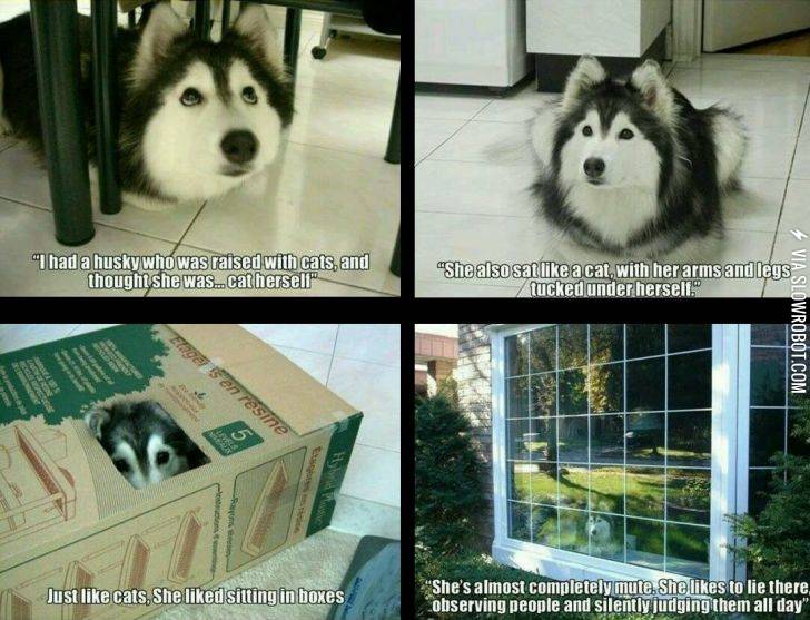 Husky raised by cats
