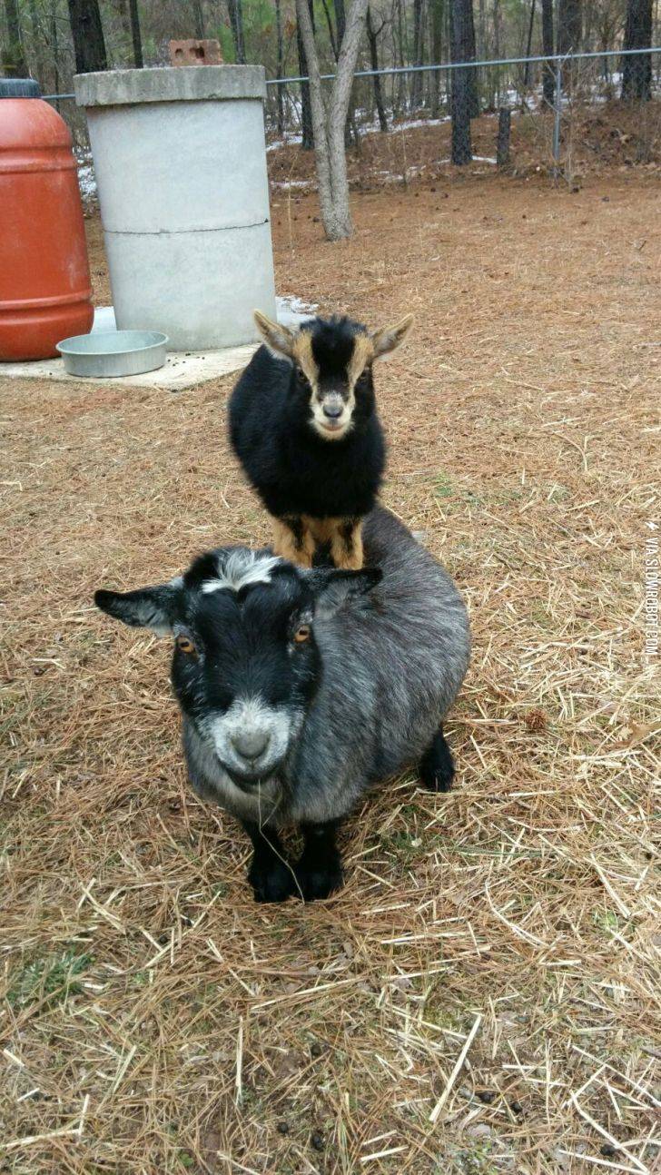 Here is a goat on top of a goat.