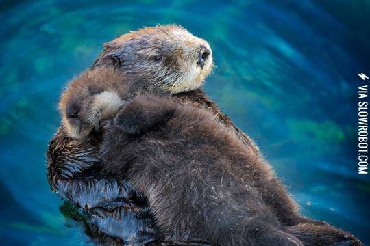 In Case You Didn’t Know, Sea Otter Pups Sleep On Their Moms