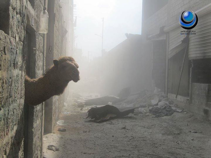 A camel after an air strike.