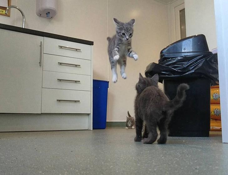 Kitten dismisses gravity.