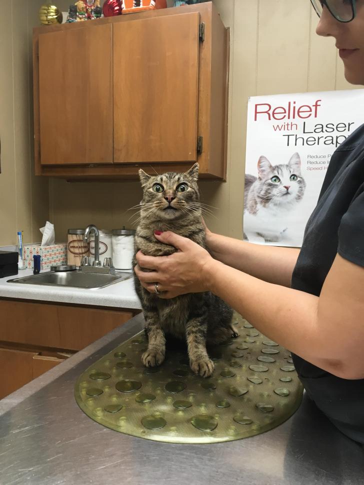 My cat was not too happy about the veterinary visit yesterday.