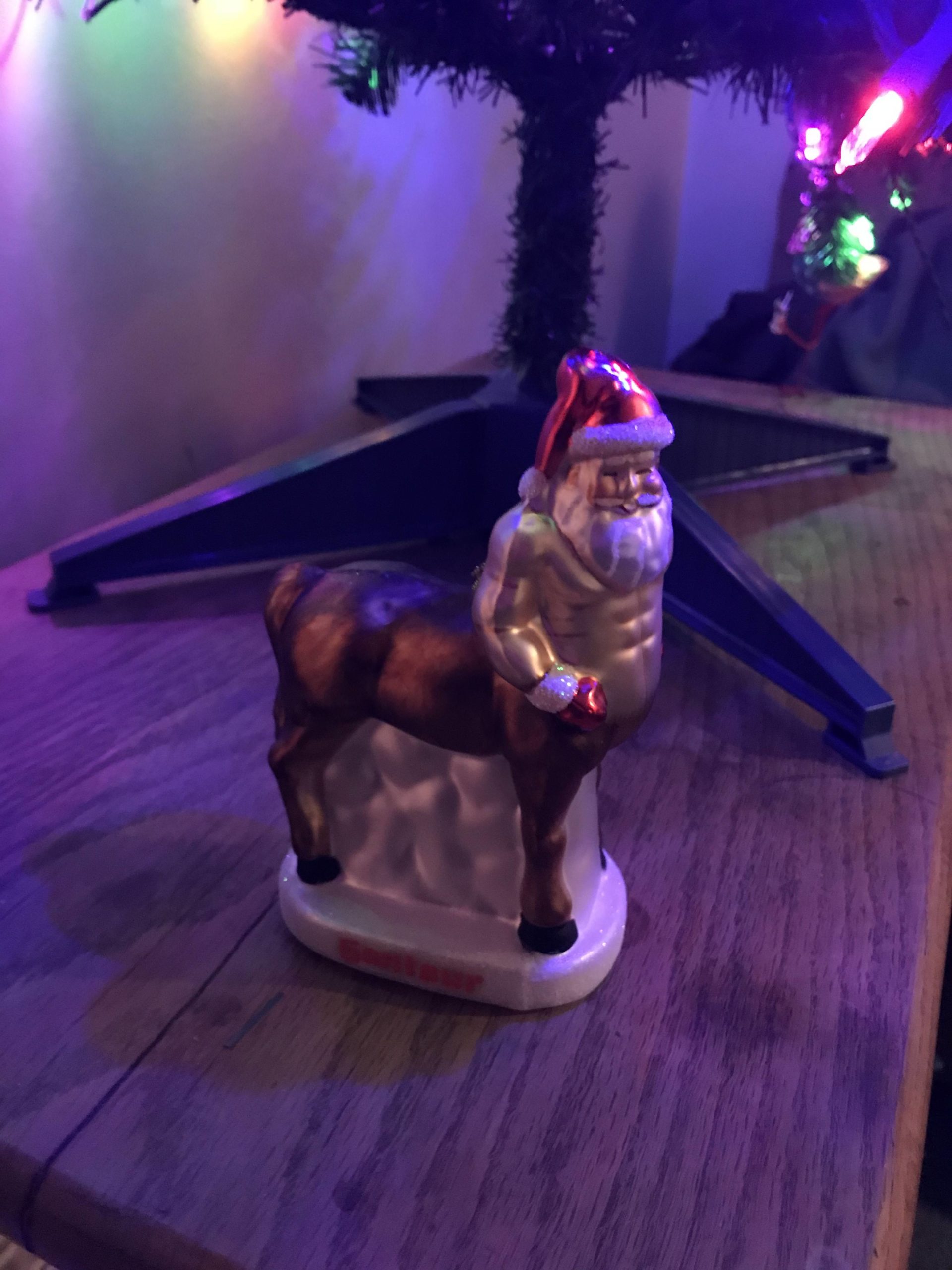 Every year we buy my dad an ugly Christmas ornaments- this year – santaur…