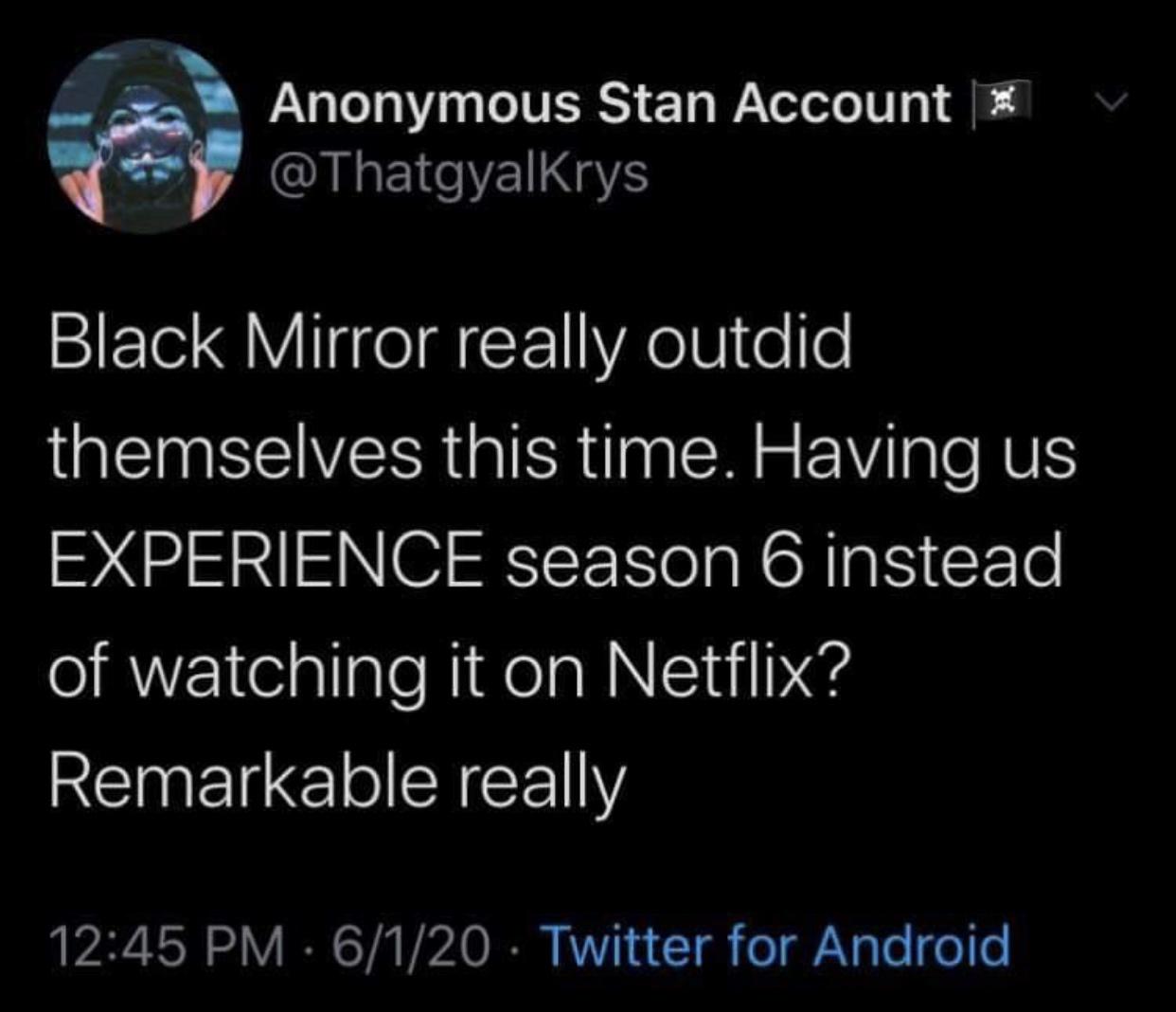 gonna be honest, not a big fan of black mirror season 6